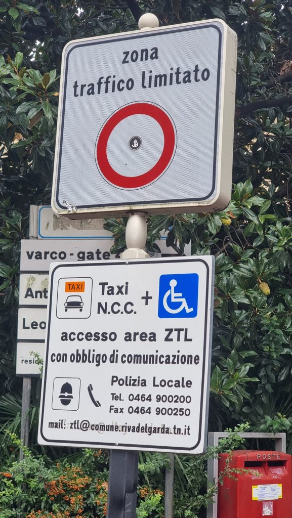 and certainly not to enter the restricted vehicle zones (ZTL). This is what the sign looks like: